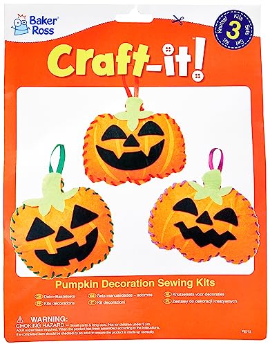 Baker Ross FE772 Pumpa dekorationssykit – 3-pack, sömnadsset för barn, kreativa aktiviteter för barn, perfekt halloween konst och hantverksprojekt, pumpa