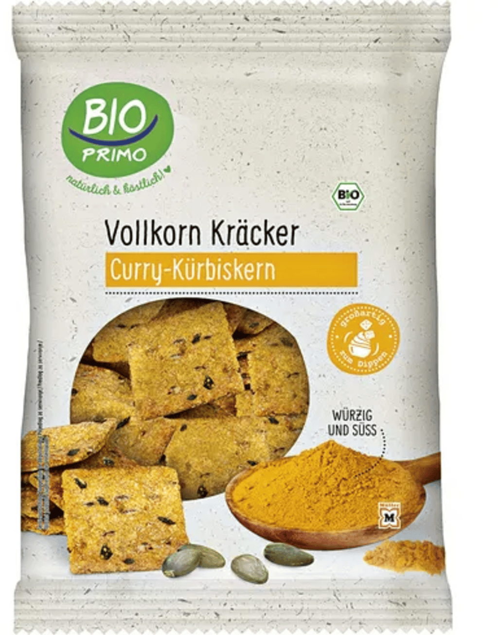 BIO PRIMO Ekologiska Fullkornskex Curry & Pumpafrön - 175 g