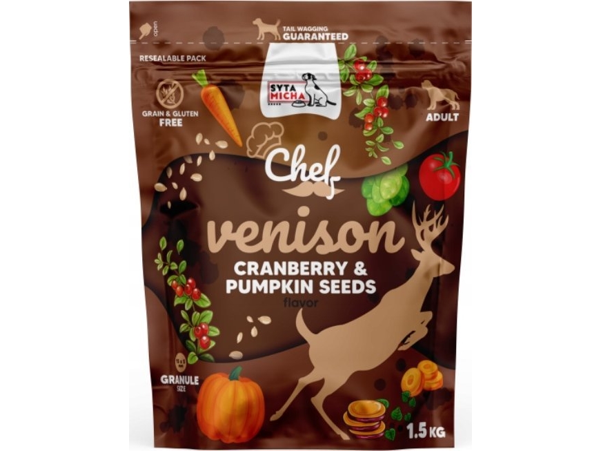 Syta Micha Chef Venison Med Tranbär Och Pumpafrön - Torrfoder För Hund - 1,5 Kg