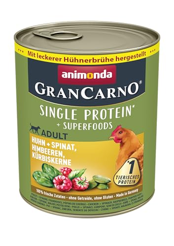 Animonda Gran Carno adult Superfoods hundmat, våtfoder för vuxna hundar, kyckling + spenat, hallon, pumpafrön (1 x 800 gm), förpackning med 1
