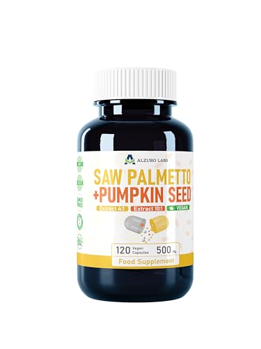 Alzuro Labs Saw Palmetto & Pumpafrön | 500 mg (4:1 & 10:1 extrakt) | 120 veganska kapslar | Högdosstöd för prostata, hormoner och stress | 4 månaders leverans | laboratorietestad | GMP
