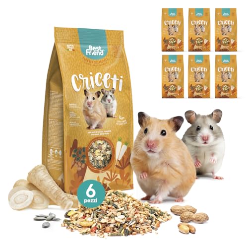 Best Friend Hamsterfoder komplett med pumpafrön, jordnötter, dehydratiserad palsternacka. Gnagarfoder med naturliga ingredienser, tillverkad i Italien | 6-pack