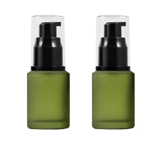 LEXICANMHS 2 stycken 60 ml tomma påfyllningsbara gröna mjölkglasflaskor med pumpflaska, sminkväska, glas, förvaringsbehållare, bärbar reseflaska, prov, provförpackning