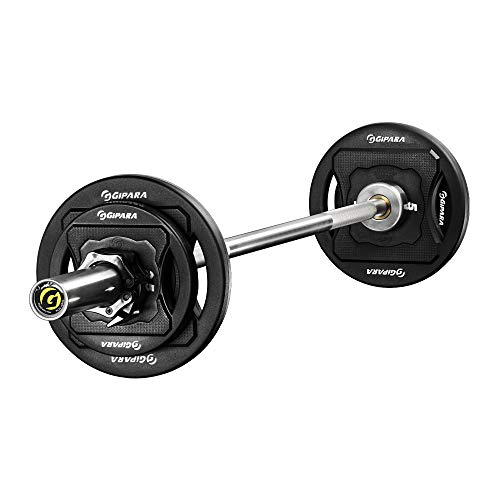 GIPARA FITNESS Iron Pump-set 9 delar | 1 rak långstång 12 kg, 6 x 2-grepps hantelskivor med gummihölje 2 x 1,25 kg, 2 x 2,5 kg, 2 x 5 kg, 2 x fjäderlås.