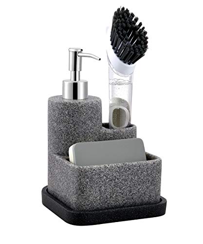 ZCCZ tvålpump med svamphållare och borsthållare, flytande handtvåldispenser, pumpset, köksdiskbänk, arrangör, hållare för svampborste, skrubb, avtagbar bricka