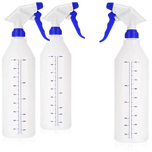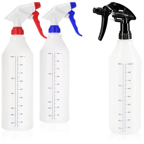 COM-FOUR® 3x sprayflaska med våg - kemikaliebeständig pumpspruta för syror, kolväten och lösningsmedel - atomizerflaska med justerbart munstycke - 900 ml (viton)