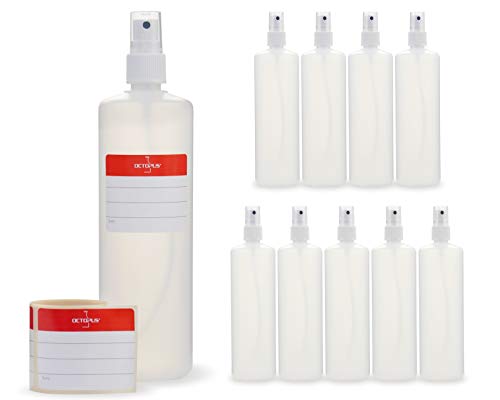 10x 250 ml Octopus sprayflaskor med fingerförstärkare, plastflaskor med pumpspruta, plastflaskor gjorda av HDPE med spridare, inklusive etiketter