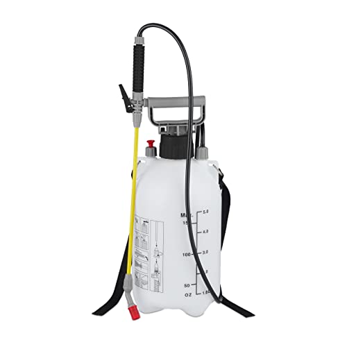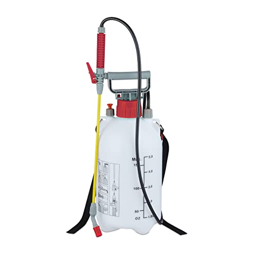 Relaxdays Tryckspruta, 5 l, bevattning och växtskydd, justerbart munstycke och bärrem, pumpspruta, vit-svart