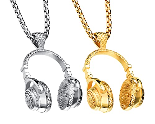 Weenkeey 2 st hörlurar halsband punk rock hip hop musik hänge halsband DJ musik halsband för män kvinnor - guld silver