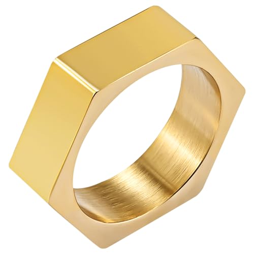 JewelryWe Hexagon ring herr sigillring: guld rostfritt stål herrring geometrisk sexkantig fingerring bandring punk hip hop biker ring band smycken för män kvinnor storlek 57, Rostfritt stål