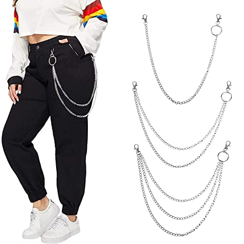 KingYH 1 Pack 60cm Jeans Chains Triple Chains Snap Closure Pants Chain Hip Hop Style for Men Women Fashion Hip Hop Rock Jeans Punk Trouser Decoration Clothes Accessories