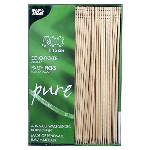 Papstar Fingermatspett/träspett "Pure" (500 stycken) 15 cm, naturligt träspett av bambu med änden för fingermat, små snacks, antipasti och cocktails, snygg design #81097