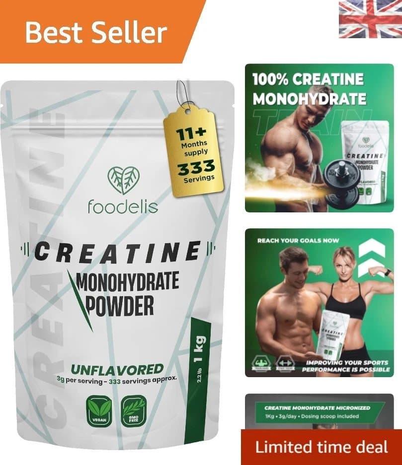 Pure Micronized Creatine Monohydrate Powder 1kg - 333 Servings for Muscle Growth