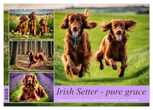 Irish Setter - pure grace (High Quality Premium Wall Calendar 2026 DIN A2 landscape),CALVENDO 12 Month Wall Calendar: Elegant pointing dog with temperament and stamina