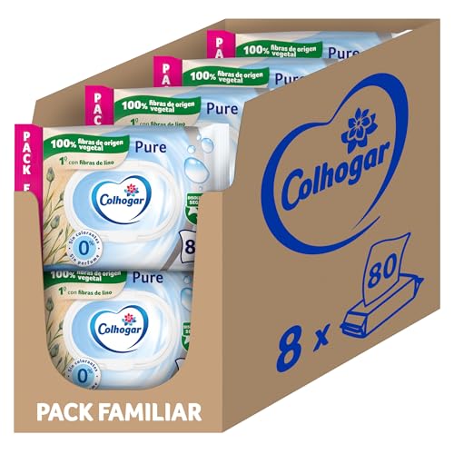 Colhogar Pure Moist 8x80 - Engångsbart vått Hygieniskt papper - Alkoholfri - Känslig hud - Dermatologiskt testat - Förpackning med 640 våta och engångs våtservetter per toalett