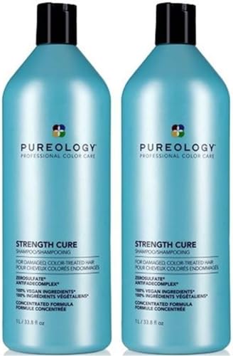 Pureology Strength Cure Shampoo and Conditioner Bundle for Damaged Hair, Sulphate Free for a Gentle Cleanse with Vegan Formulas
