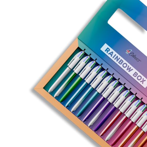 BIC 4 färger begränsad upplaga Rainbow Box, Ideal Collector Bicolor, Shine and Glacé versioner - set med 15 pennor, starta din samling med 4 färger nu!