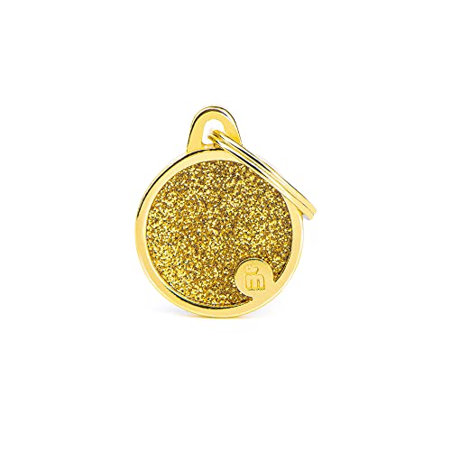 My Family Anpassad ID-skylt för hund Made in Italien, Purpurin liten cirkel, Guld, Gratis graverad hund namnskylt, Metall, Shine Collection, 21x26 mm