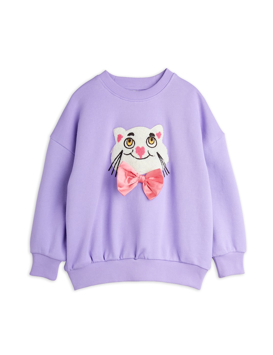 Mini Rodini GOTS Cat With Bowtie Chenille Sweatshirt Purple Purple 128/134 cm Lila 128/134 cm kvinna