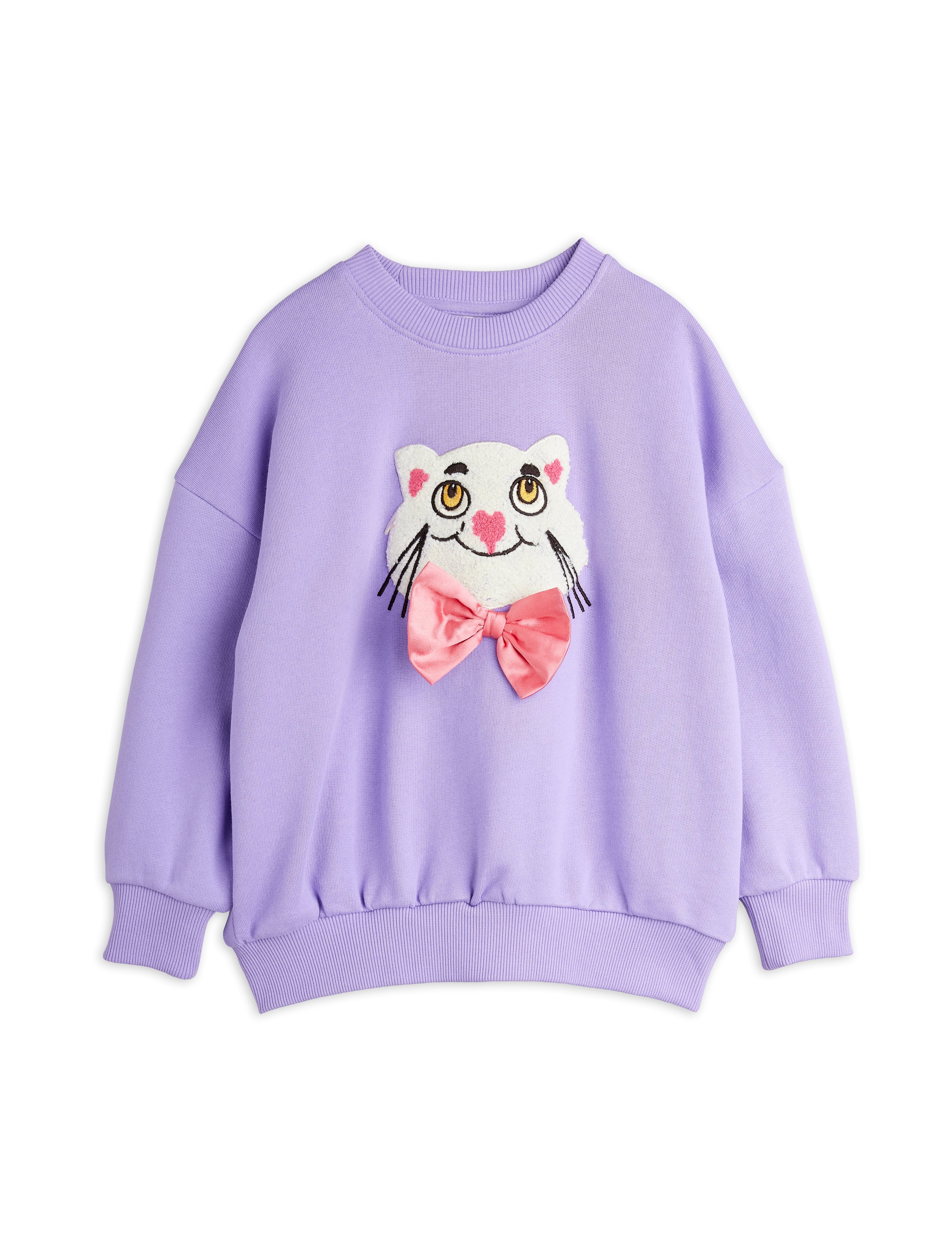 Mini Rodini GOTS Cat With Bowtie Chenille Sweatshirt Purple Purple 140/146 cm Lila 140/146 cm kvinna