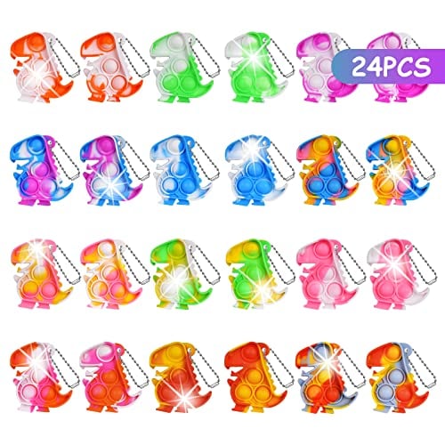 Ainiv Pop Push It Fidgetleksak, 24 st. dinosauriefigurer på mininyckelring, anti-stress, sensorisk fidgetleksak med nyckelring, bubbelleksak för autister, för ADHD, klämleksaker