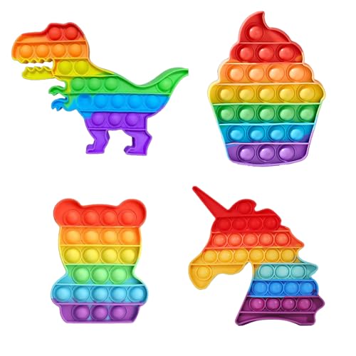 Pop It Fidget leksaksset, regnbåge push pop bubble, 4 stycken – dinosaurier 13 x 18 cm, cupcake 14,5 x 11 cm, björn 12,5 x 9,5 cm, enhörning 15,5 x 13,2 cm