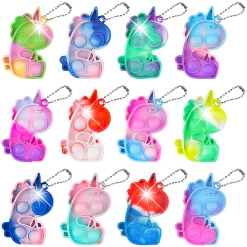 Ainiv Pop Push It Fidgetleksak, 12 st. enhörningsfigur på mininyckelring, anti-stress, sensorisk fidgetleksak med nyckelring, bubbelleksak för autister, för ADHD, klämleksaker