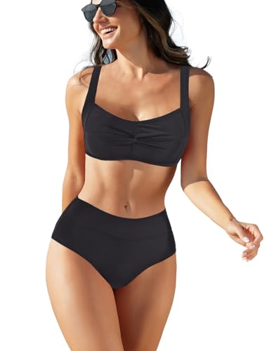 Vancavoo Dam Baddräkt 2 Delar Baddräkter Hög Midja Bikini Set Push Up Vadderad Sport BH Bikini Toppar Strandkläder Badkläder, Svart, L