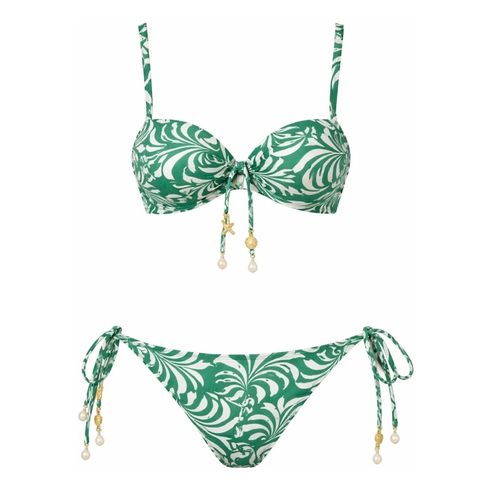Twinset, Badkläder , Dam, XL, Push-up Bikini Set med Pärldetaljer