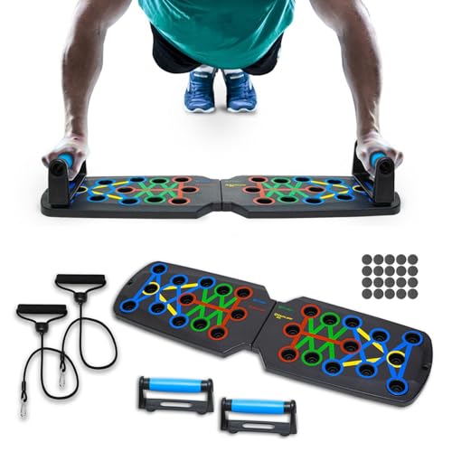 Generise Push Up Board 12-i-1 bärbar hopfällbar träningsstation för att rikta in sig på bröst, rygg, axlar och triceps - inkluderar handtag, motståndsband och halkfria klistermärken