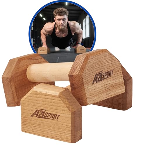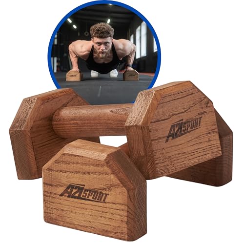 A2Z SPORT® Premium Parallettes upp till 1500 kg – Armhävningar Handtag i Trä och Metall – Halkfria Push Up Handtag/Dip Barren – Push Up Bars för Calisthenics, Styrketräning (STANDARD)