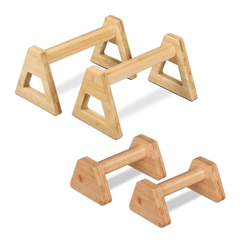 Relaxdays push-up-handtag, set om 4, paralletter bambu, 2 olika storlekar, kalistenesiska, handstående stöd, natur