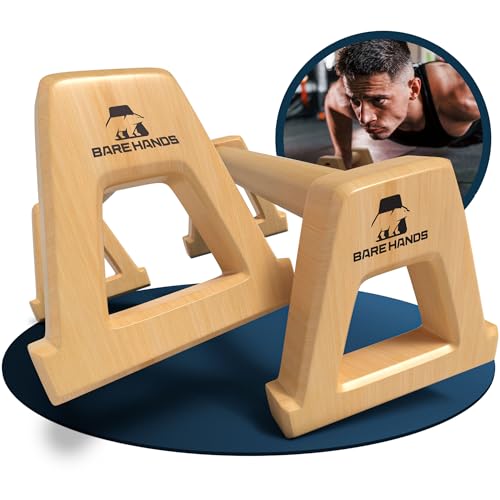 BARE HANDS push-up-handtag – 2 x ländryggssäkra och halkfria push-up-handtag i trä – kalisthenics utrustning för inomhus och utomhus – perfekt för handstativ och push-ups