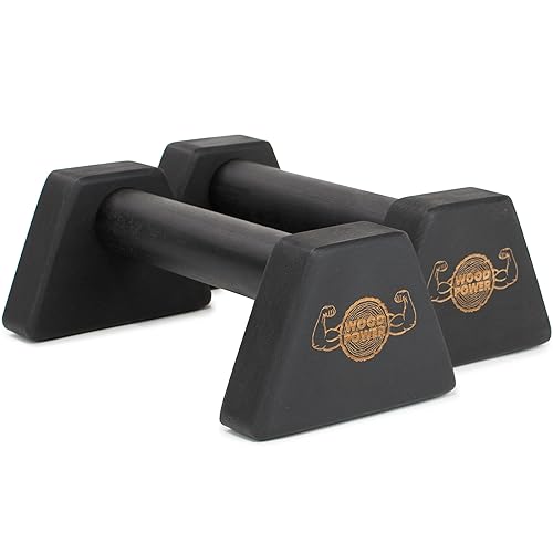 WOODPOWER® PowerBars träparalletter, ländryggssäkra push-up-handtag, halkfria handhållna stänger, inomhus och utomhus, kalistenesik och yoga (svart)