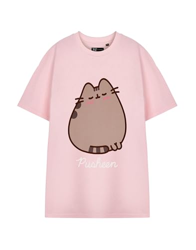 Pusheen rosa kortärmad grafisk t-shirt för kvinnor | Blush Cat Lover T-Shirt | Söt Kawaii katttopp | Bekväma internetkläder | rosa t-shirt för kvinnor produkter gåva till henne, Rosa, S