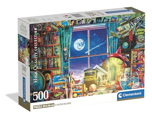 CLEMENTONI-PUSSEL FÖR VUXNAPZL 500 HQC TO THE MOON COMPACT BOX, Tillverkad i Italien, 35590
