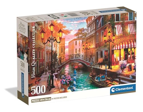 CLEMENTONI-PUSSEL FÖR VUXNAPZL 500 HQC SUNSET OVER VENICE COMPACT BOX, Tillverkad i Italien, 35586
