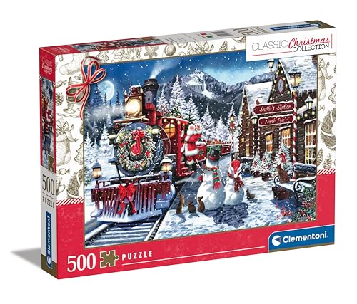 Clementoni Pussel kub jultåg 500 delar – kompakt låda – pussel för vuxna 14-99 år, present till män/kvinnor, tillverkad i Italien, 35566