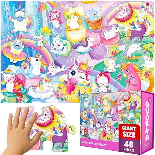 QUOKKA Jättepussel För Barn I Åldrarna 4-6 - 60x90 Cm Extra Tjockt 48 Bitars Pussel För Småbarn I Åldrarna 3-5 - Enhörning Pedagogisk Aktivitet För Pojkar Och Flickor - Premiumlåda Med