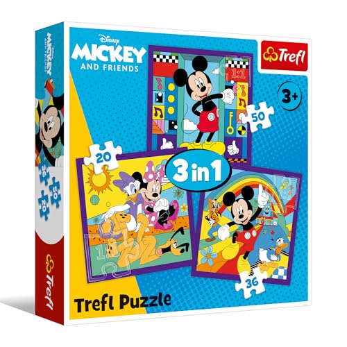 Trefl – Mickey Mouse and Friends, Musse och hans glada gäng – 3-i-1-pussel, 3 pussel, 20 till 50 bitar – olika svårighetsgrader, underhållning för barn från 3 år