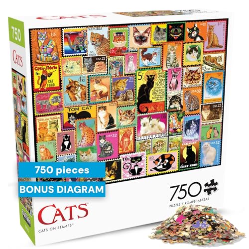 Buffalo Games – katter på frimärken – 750 bitar pussel för vuxna utmanande pussel perfekt för spelkvällar – färdig storlek 24,00 x 18,00