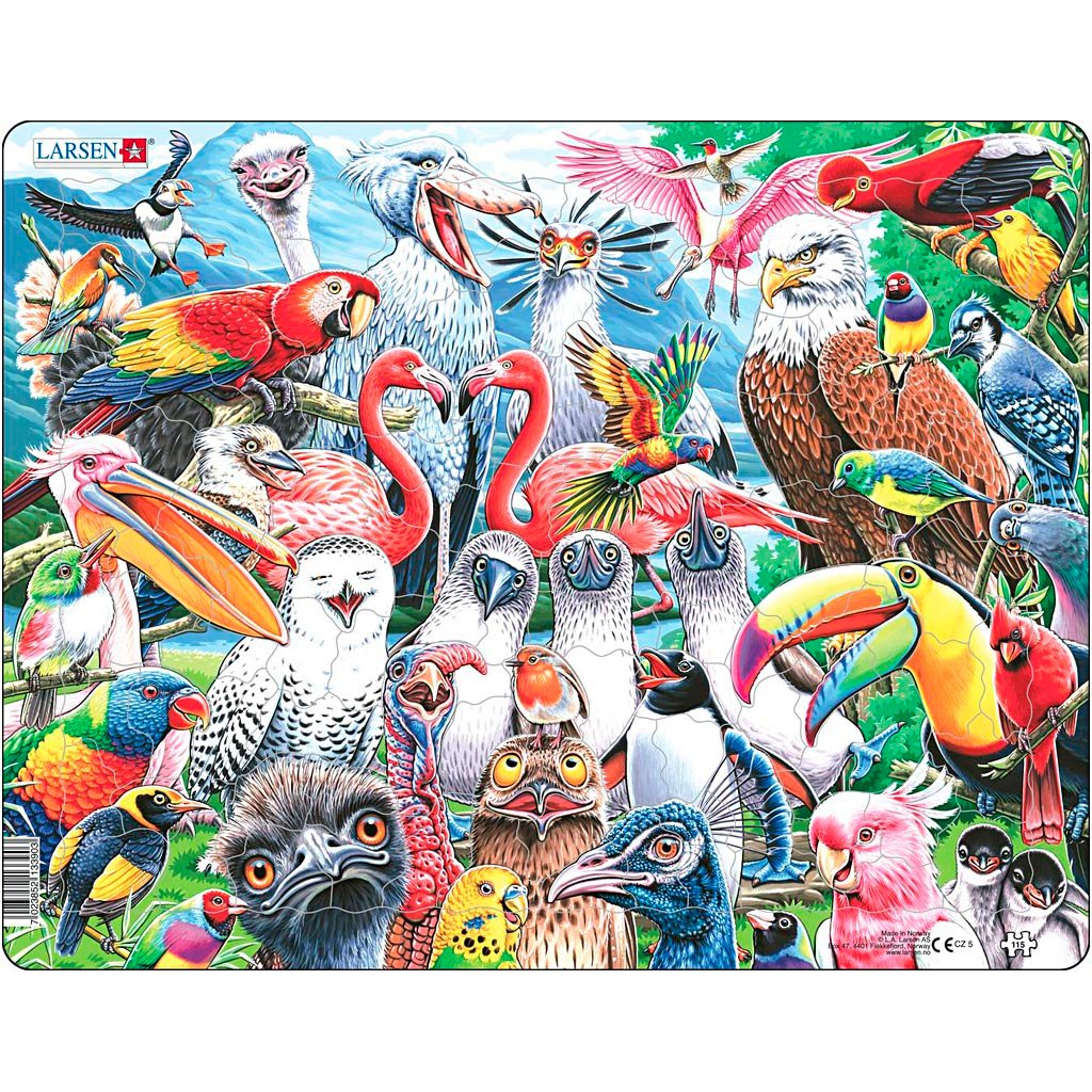 Pussel, Världens fåglar, L: 36,5, B: 28,5 cm, 115 delar/ 1 st.