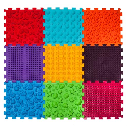 Funny-Steps Super Mix ortopedisk sensorisk lekmatta för barn (9 ljus skogsväg pussel)