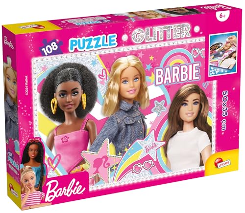 Lisciani - BARBIE GLITTERPUSSEL - 108 bitar - Tankespel - Pedagogiskt spel - 50 x 35 cm - Liggande version - Glänsande pussel - För barn från 4 år och uppåt
