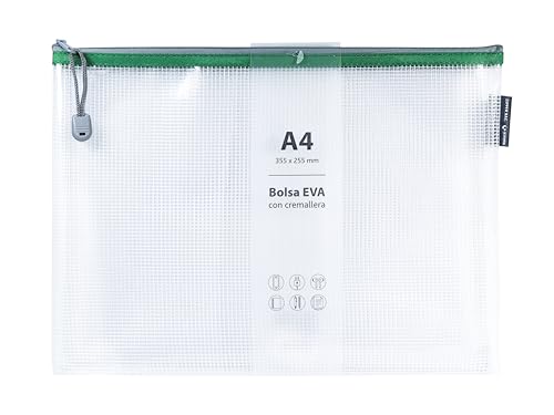 Grafoplás | A4 EVA dragkedja väska | Tillverkad av transparent EVA-gummi med grön dragkedja | Perfekt för transport och skydd av alla typer av föremål, dokument, kosmetika eller pussel