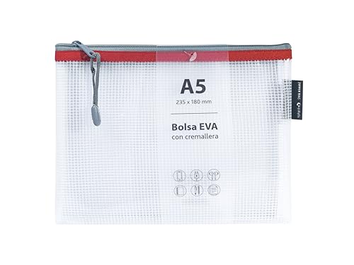 Grafoplás | EVA a5 dragkedja väska | Tillverkad av transparent EVA-gummi | Röd dragkedja | Perfekt för transport och skydd av alla typer av föremål, dokument, kosmetika eller pussel