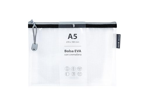 Grafoplás | EVA a5 dragkedja väska | Tillverkad av transparent EVA-gummi | Svart dragkedja | Perfekt för transport och skydd av alla typer av föremål, dokument, kosmetika eller pussel