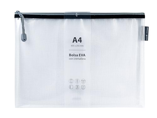 Grafoplás | A4 EVA dragkedja väska | Tillverkad av transparent EVA-gummi | Svart dragkedja | Perfekt för transport och skydd av alla typer av föremål, dokument, kosmetika eller pussel