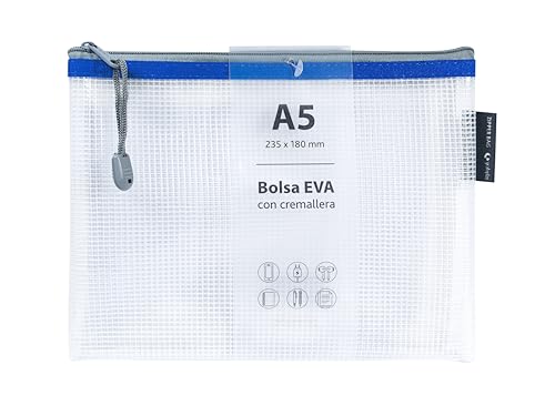 Grafoplás | EVA a5 dragkedja väska | Tillverkad av transparent EVA-gummi med blå dragkedja | Perfekt för transport och skydd av alla typer av föremål, dokument, kosmetika eller pussel