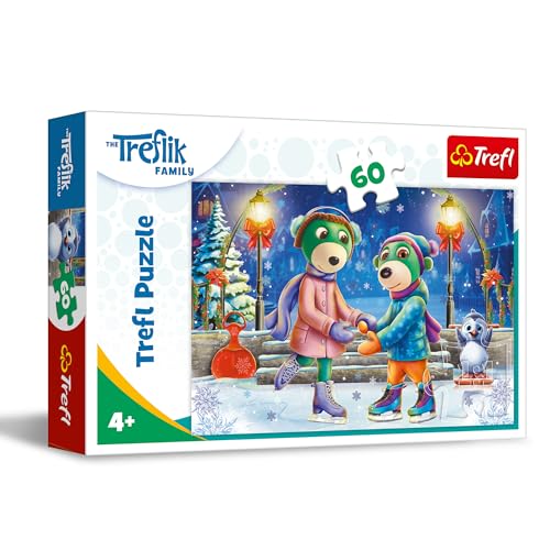 Trefl – The Treflik Family, Vinter hos Treflik – Pussel 60 bitar – Färgglatt pussel med sagans karaktärer, Kreativ underhållning, Lek för barn från 4 år